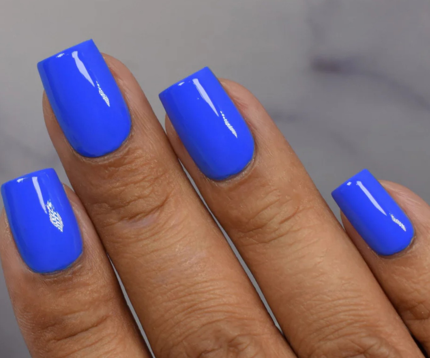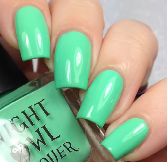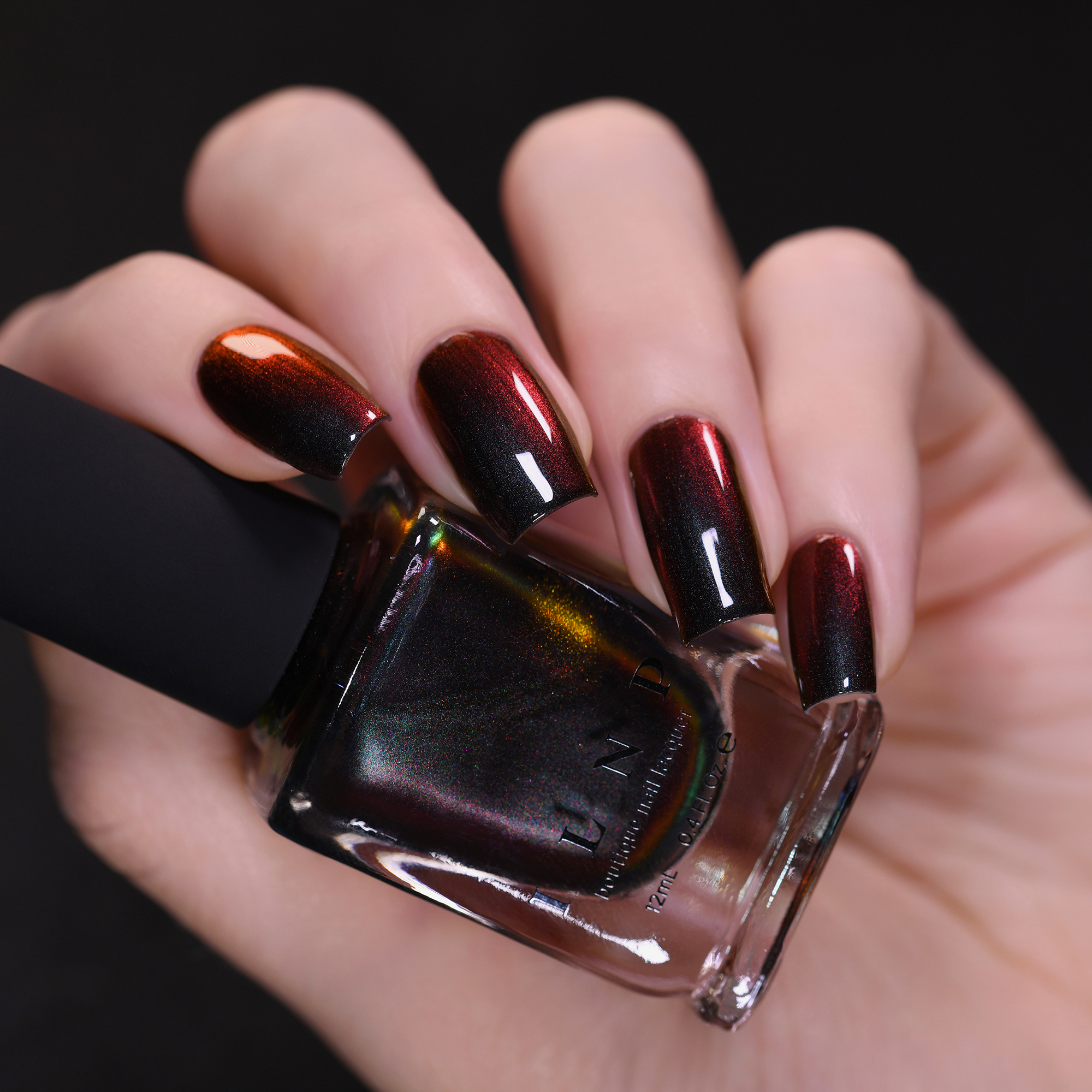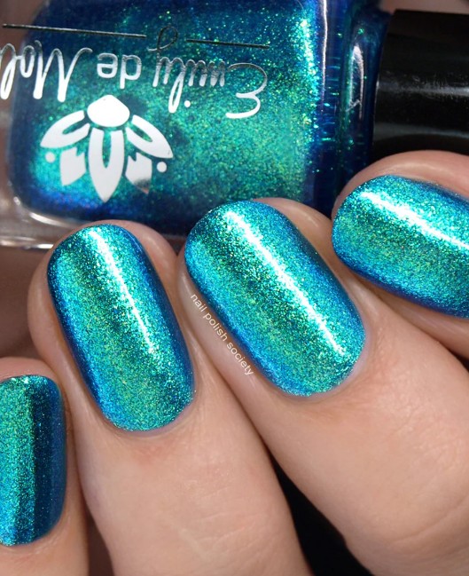 Multichrome lacquer that shifts between shades of green, teal, yellow, and blue