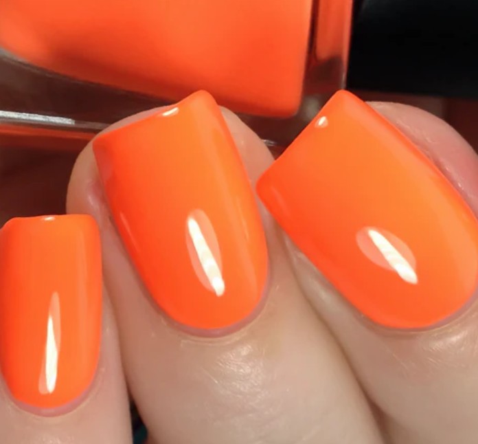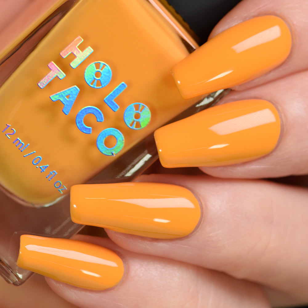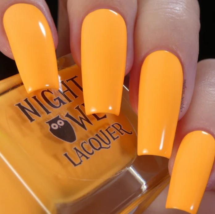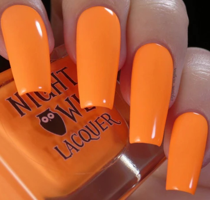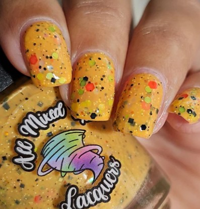 Light orange crelly loaded with black, orange, white, gold and iridescent glitters in different sizes and shapes