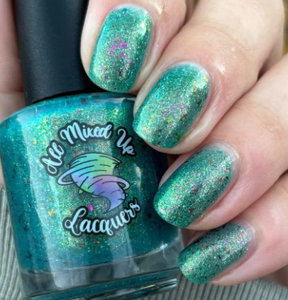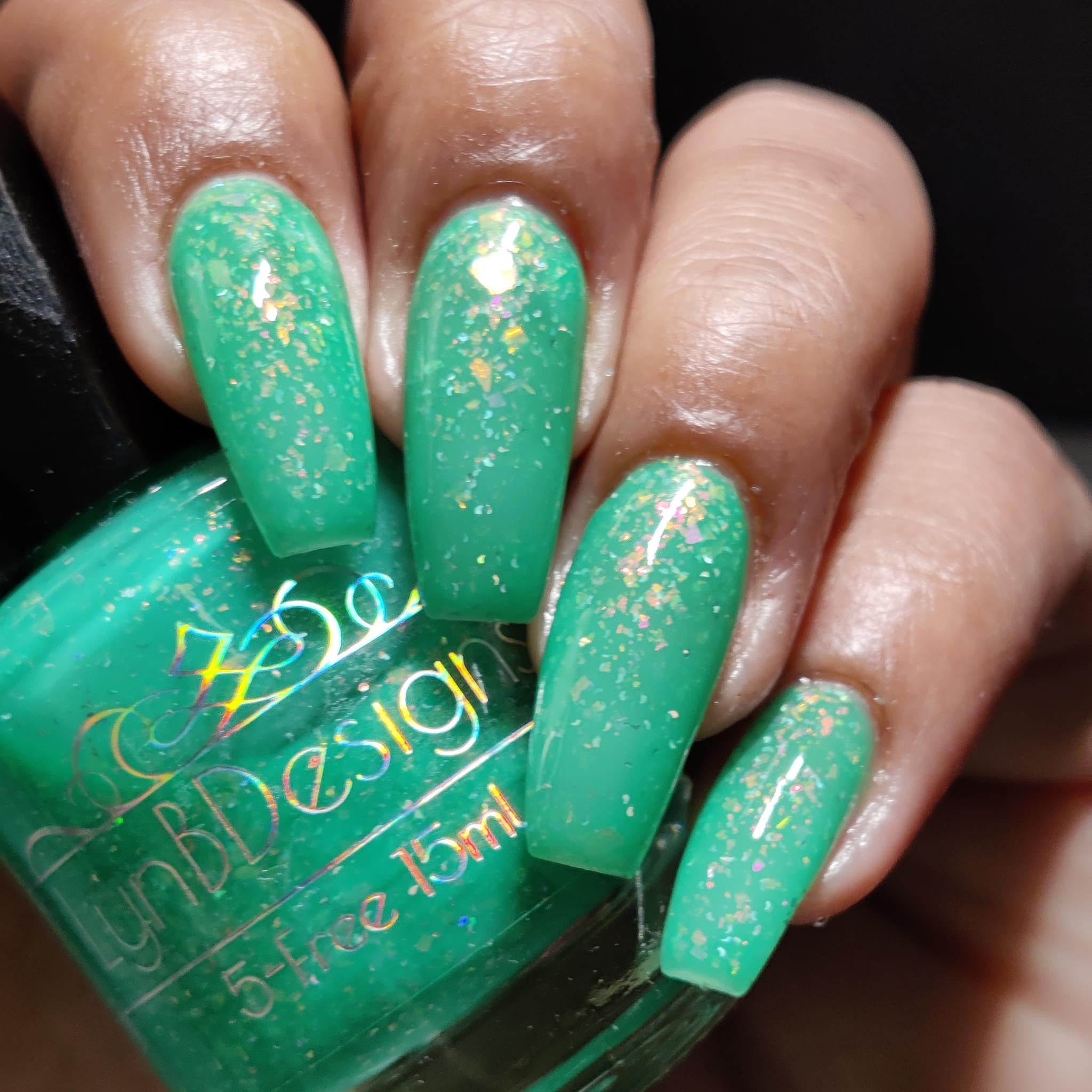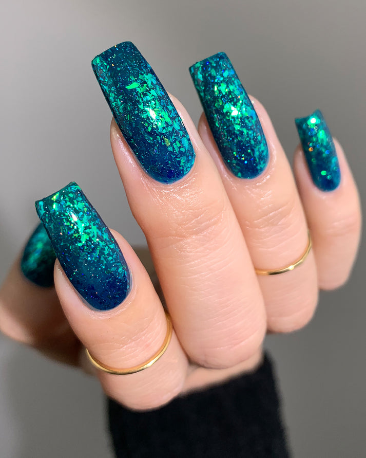Teal jelly base with gold/aqua shimmer and 3 different intense ucc colorshifting flakies