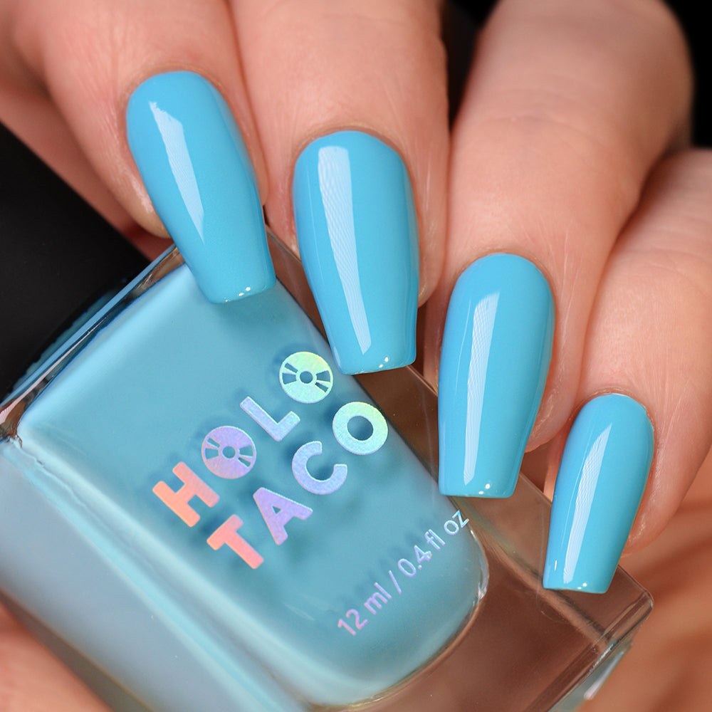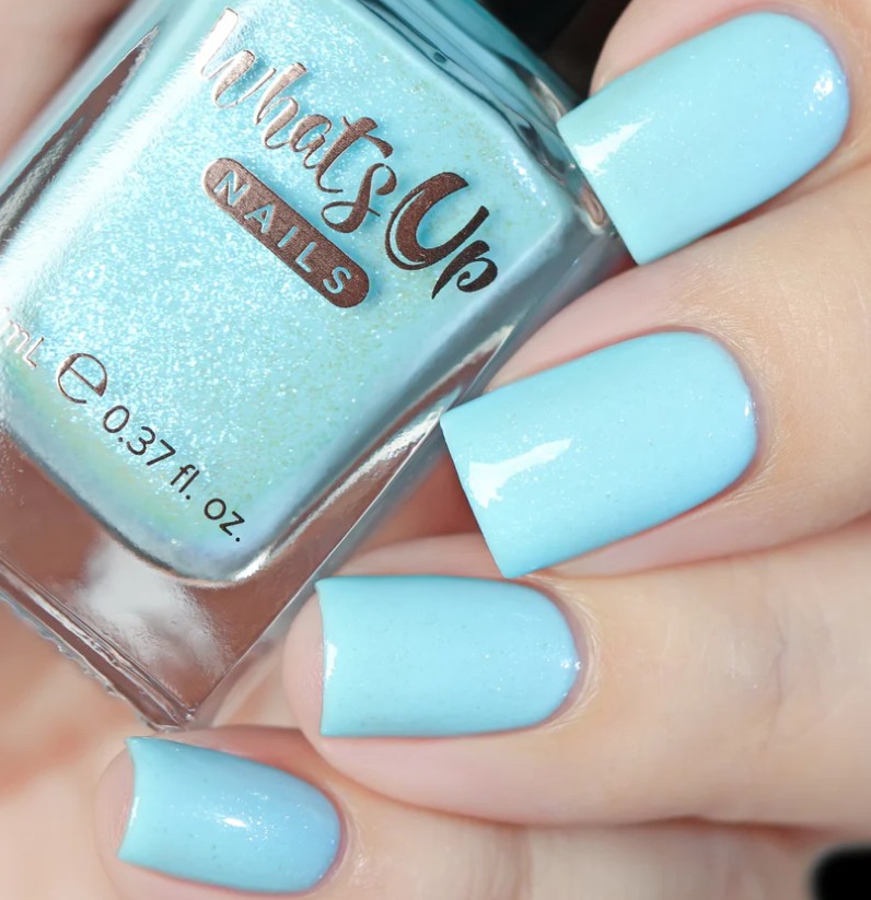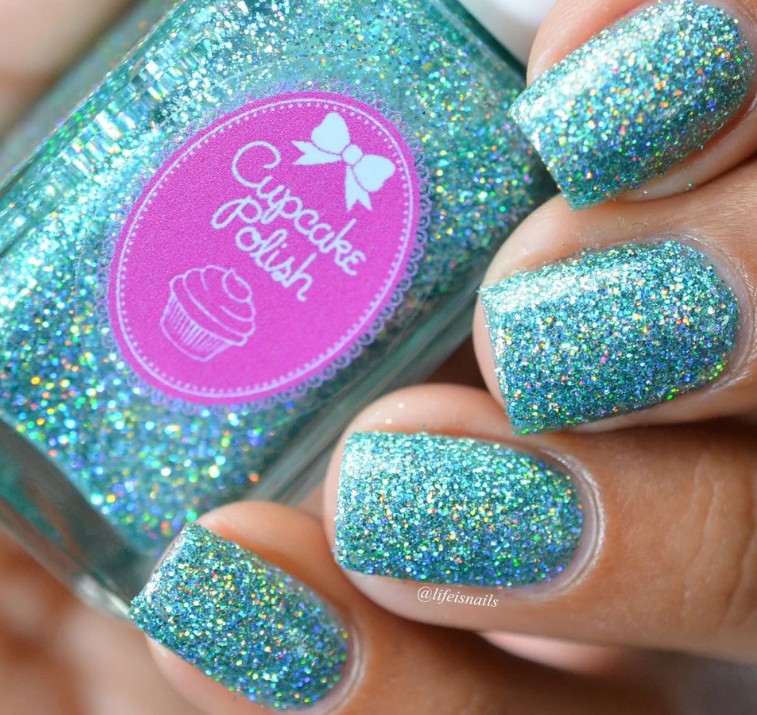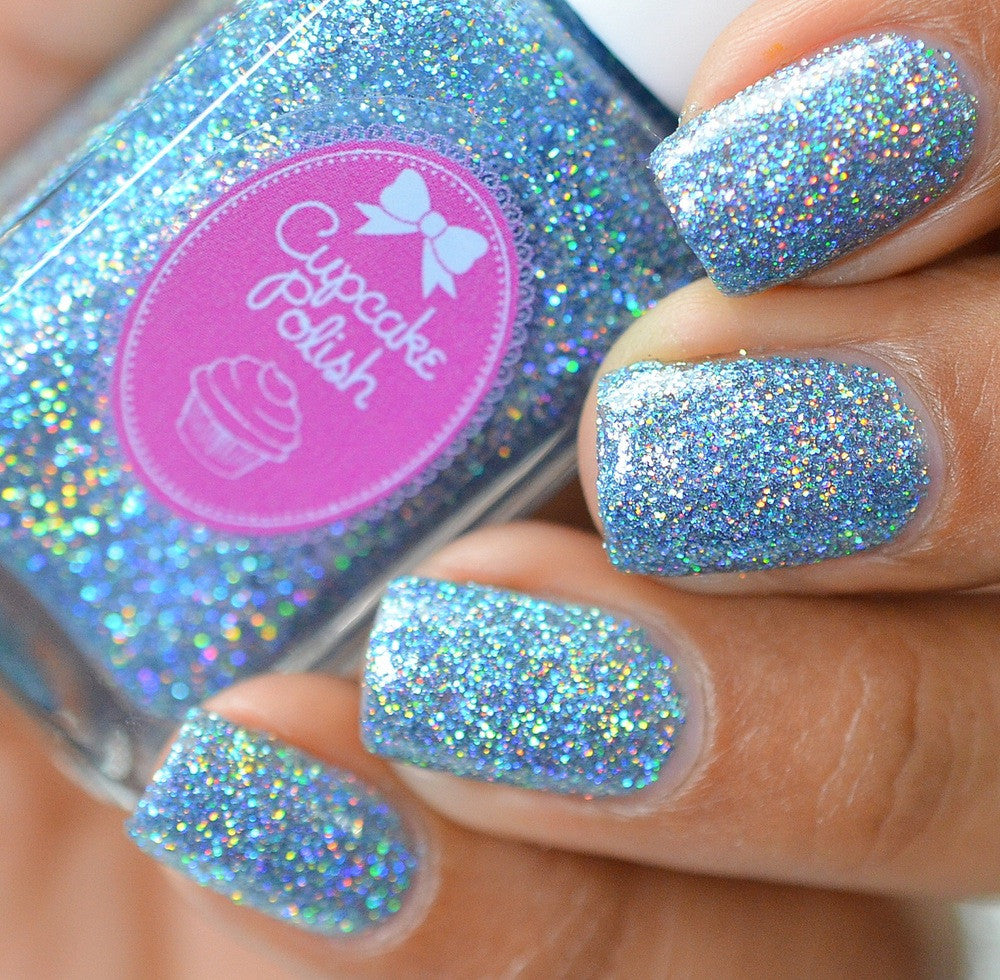Clear base filled with holographic dust and glowy shimmer that shifts aqua/blue/indigo