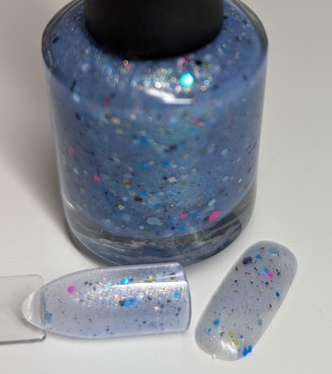 Periwinkle blue jelly with white shimmer and black/white/pink/blue matte and holographic glitters