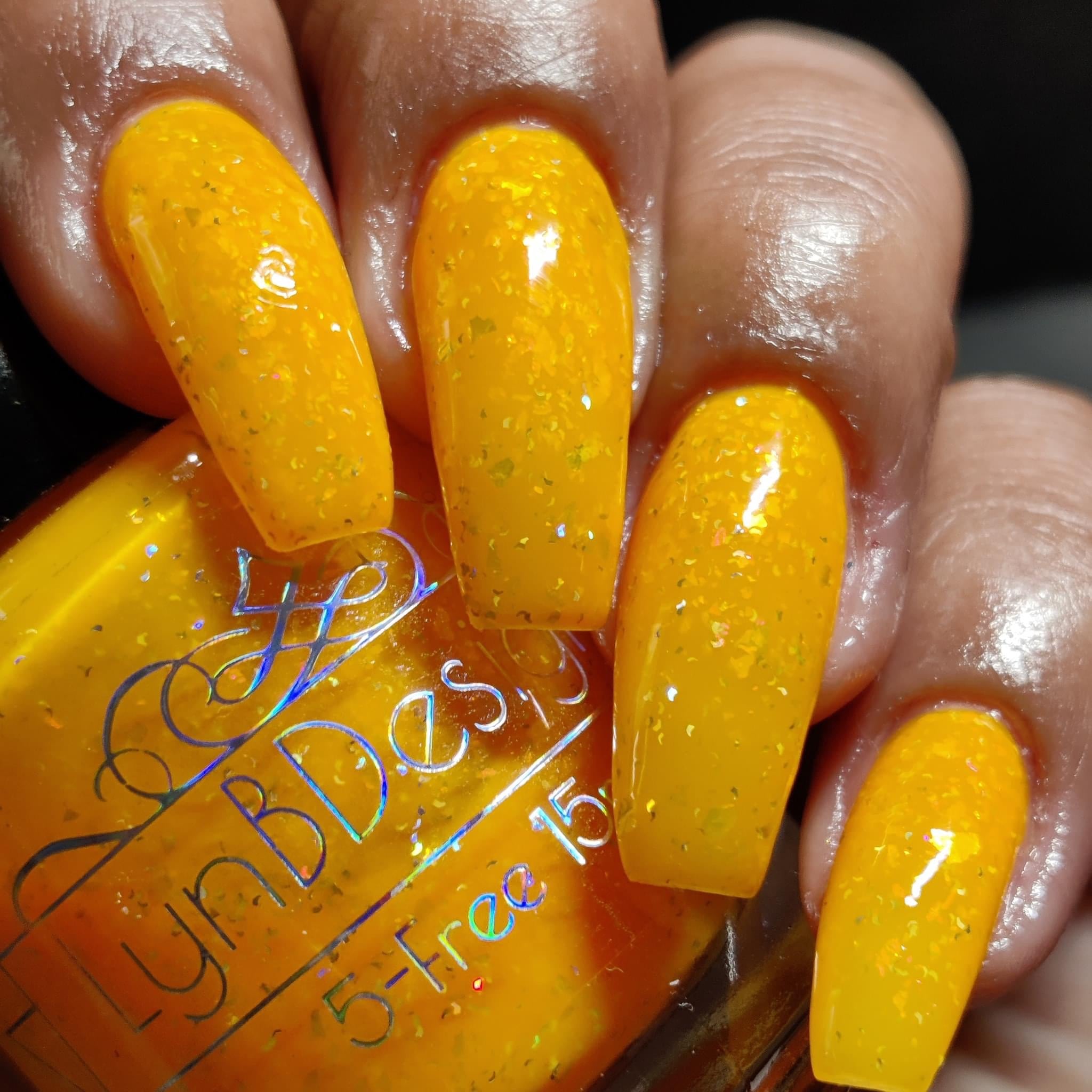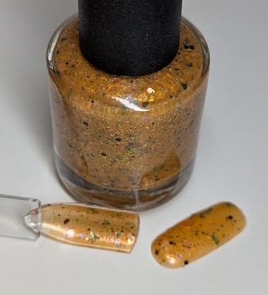 Ochre jelly with green and purple iridescent flakies and green/orange/black matte glitters