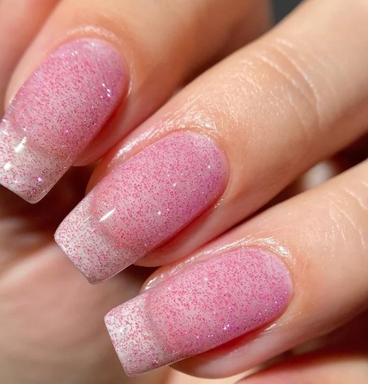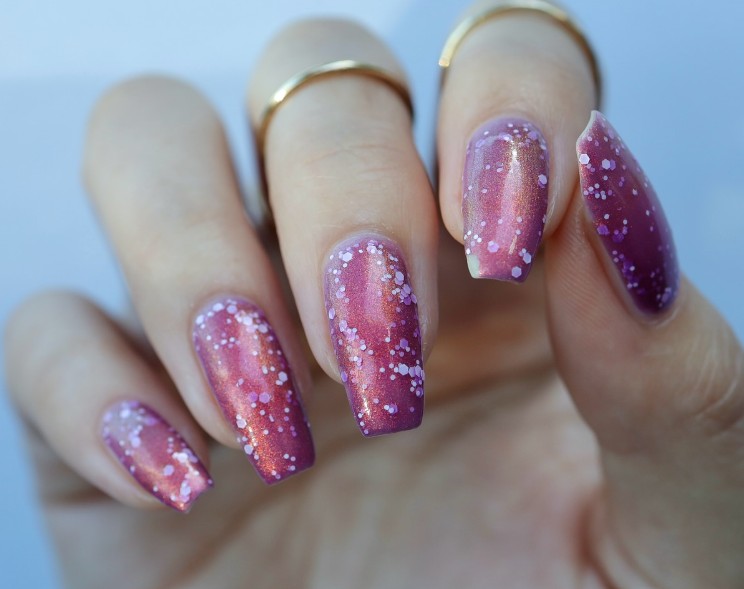 Mauve jelly with holographic micro glitter, dark blue reflective glitter and a pink shimmer