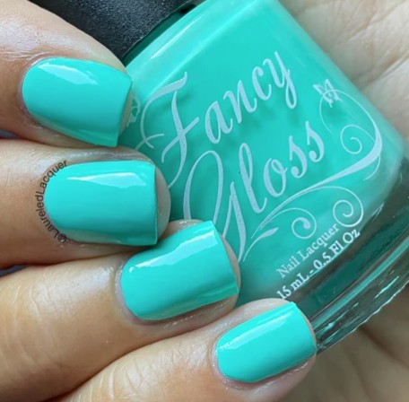 Neon turquoise jelly base with blue green glass flakes, magenta and black metallic flakes